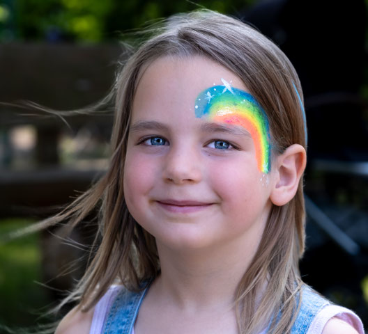 Edda kam mit ihrer Mamma zum Fest und präsentierte stolz ihr gelungenes Kinderschmikgesicht.